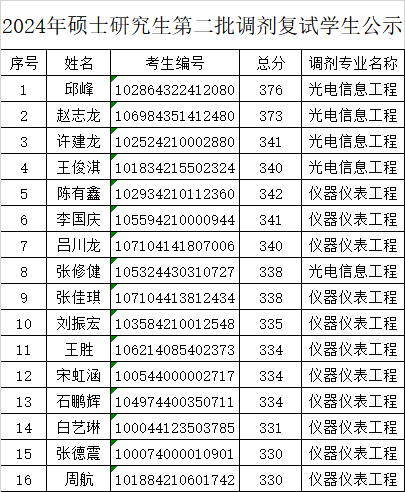 2024年硕士研究生第二批调剂复试学生名单公示