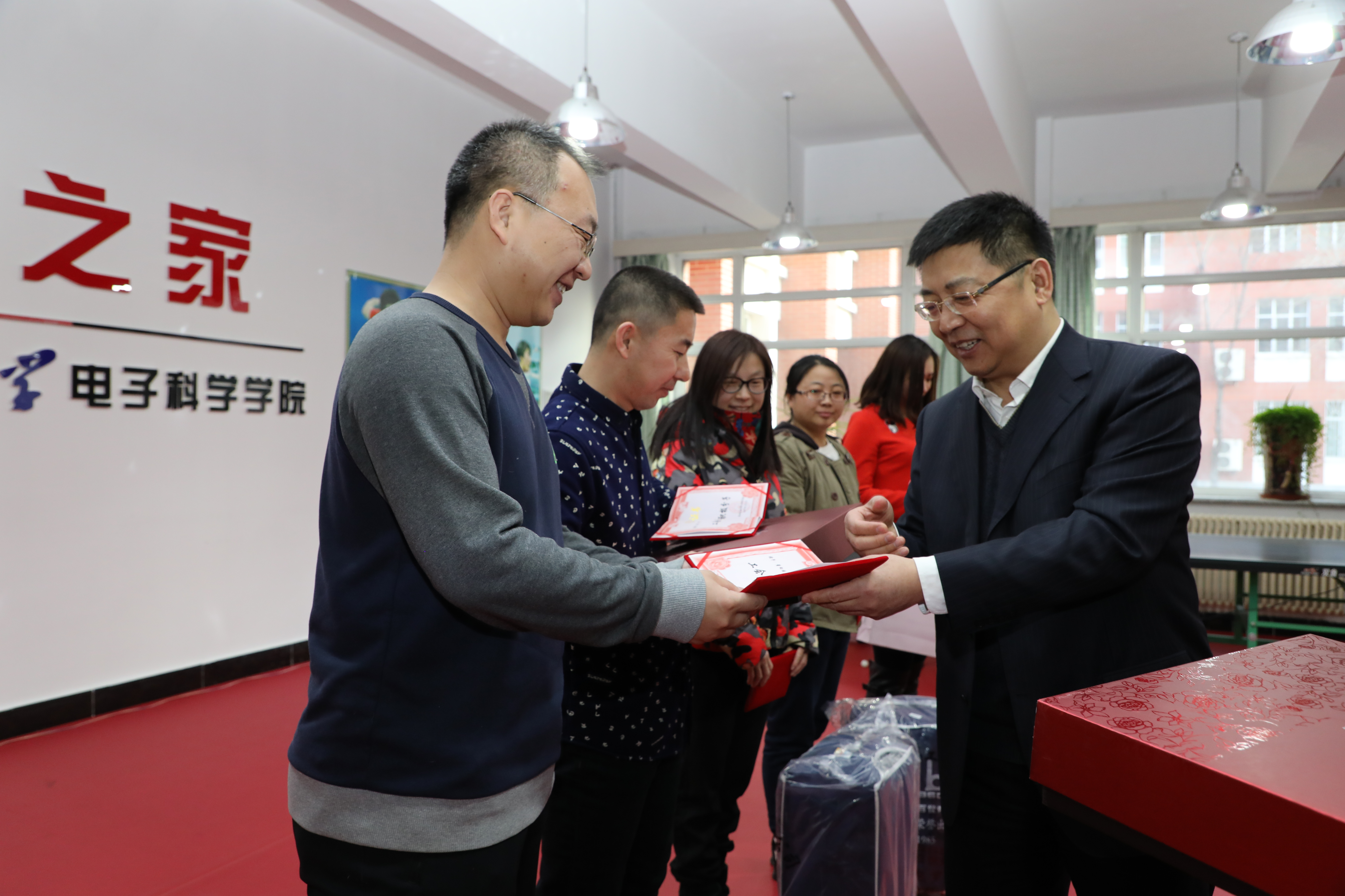 在第106个“三八”妇女劳动节来临之际,为了全面实施“十三五”规划,贯彻党中央的群团工作会议精神,使广大教职工以饱满的精神状态投入到学校及学院的发展建设中,3月7日电子科学学院开展了以“凝心聚力、强身健心”为主题的创意活动。校党委书记李海红应邀参加活动并为受到表彰的教师颁奖,鼓励全体教职员工在以后的工作中要再接再厉,锐意进取。