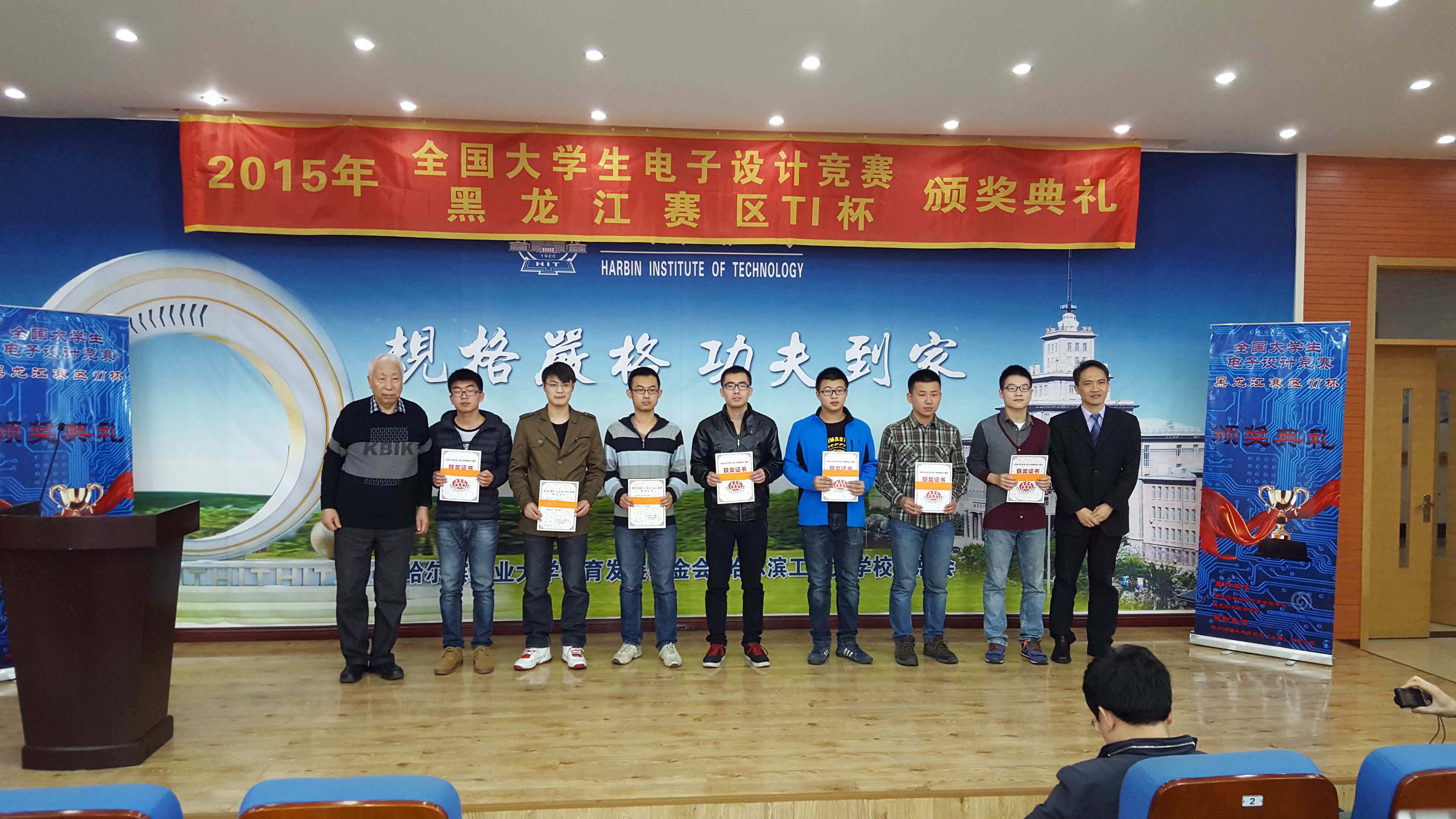 由教育部高教司和信息化产业部主办的2015年全国电子设计竞赛颁奖大会于11月14日在哈尔滨工业大学结束,经过初赛和复赛测评,东北石油大学代表队在教务处和电子科学学院教师及全体参赛学生的共同努力下,取得了可喜的成绩。其中,我校由刘东明老师指导的作品“数字频率计”获得国家级二等奖1项;由李玉爽、邢志方等教师指导的“频谱分析仪”、“双向DC-DC变换”等作品获得黑龙江省一等奖3项、二等奖1项、三等奖1项。
