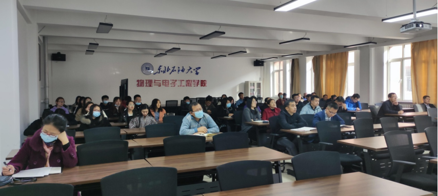 2021年10月29日下午,金沙集团1862cc成色开展了以“学习贯彻习近平总书记七一重要讲话精神”为主题的党课活动。本次党课由物电院党委书记段志雁主讲,本院教师党员及学生党员代表参加了党课学习。