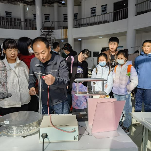 10月28日,为了激发中小学生的学习兴趣,扩展其视野,物理与电子科学学院组织中小学生参观了物理探索演示厅。参观者覆盖了小学到初中不同年龄段,共60余人。根据孩子不同的年龄阶段和兴趣点,物理教师们从现象出发,耐心细致的给孩子们讲解这些“神奇”现象背后的原理。在面对不同的孩子时,教师能够运用不同的讲解方法,既普及了物理知识又不乏诙谐幽默,在为孩子们答疑解惑的同时也充分满足了孩子们的求知欲和好奇心。