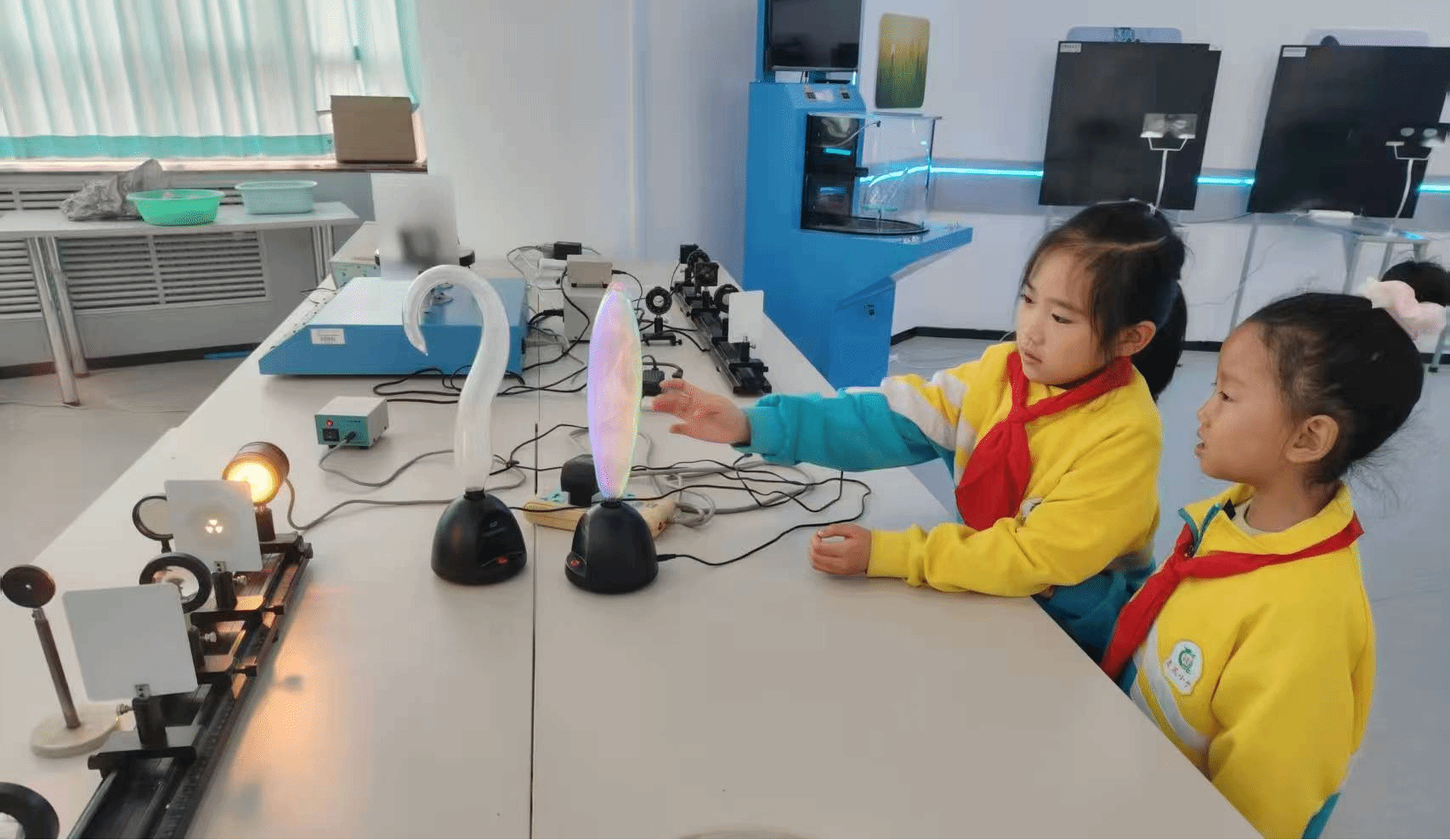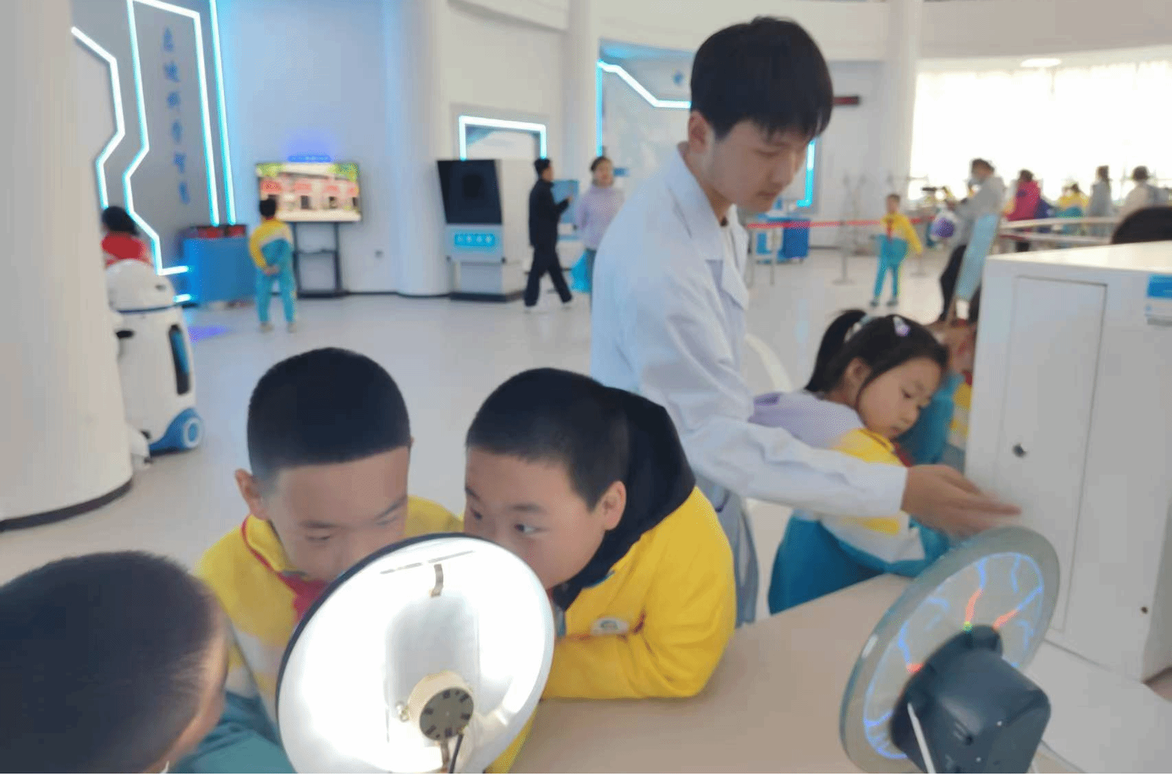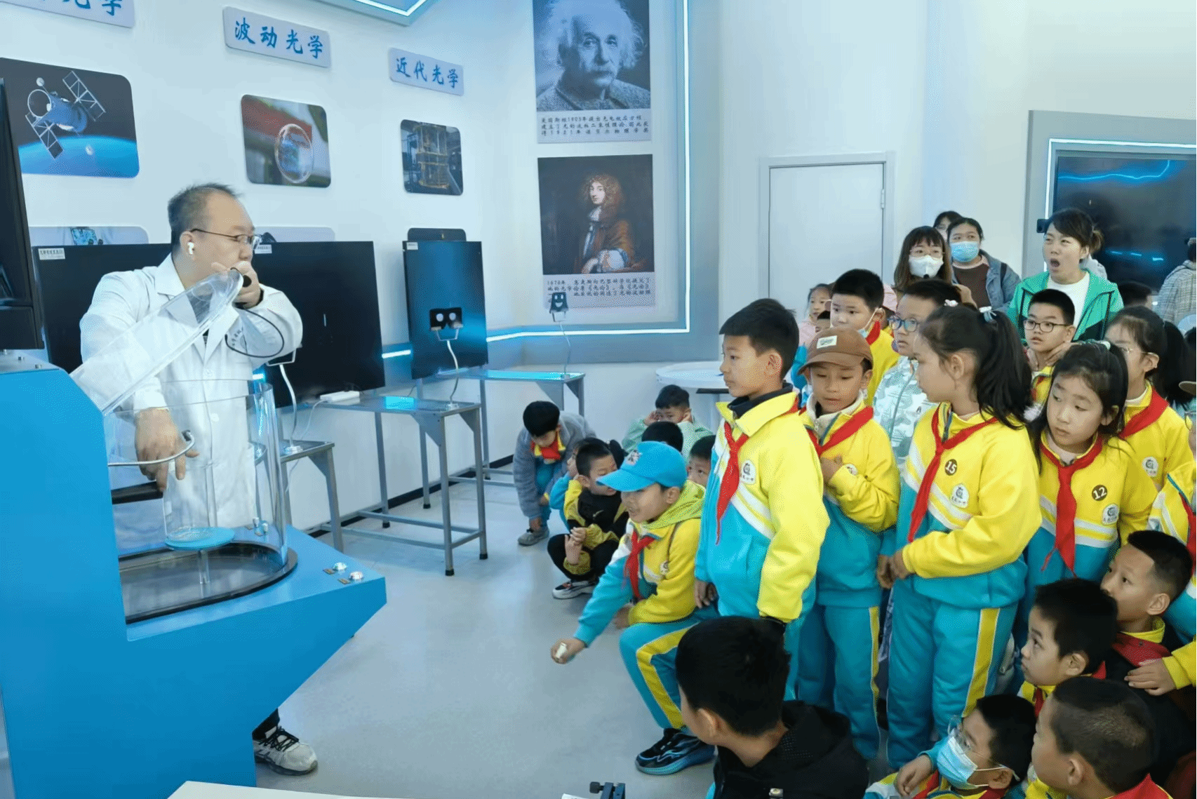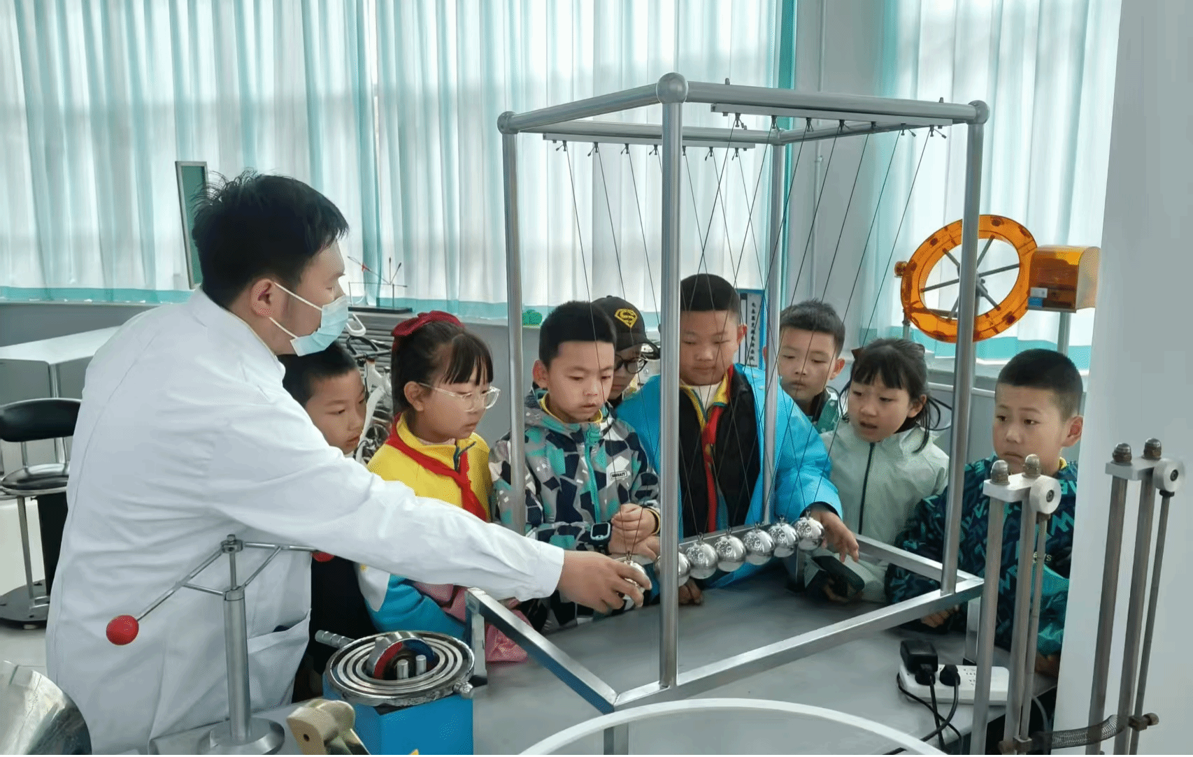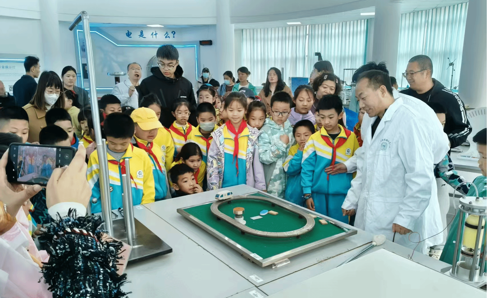 5月17日,大庆市庆风小学200余名学生走进金沙集团1862cc成色物理探索演示馆,开启了一场以“触摸科学·启迪未来”为主题的沉浸式研学之旅。此次活动通过校企联动模式,将高校科研资源转化为基础教育实践课堂,为小学生搭建了近距离感受物理学科魅力的平台。在学院物理教师与大学生物理宣讲团的讲解引导下,学生们分组体验了涵盖力学、光学、电磁学及现代科技的前沿展项,通过“做中学、玩中悟”的方式深化对物理原理的认知。