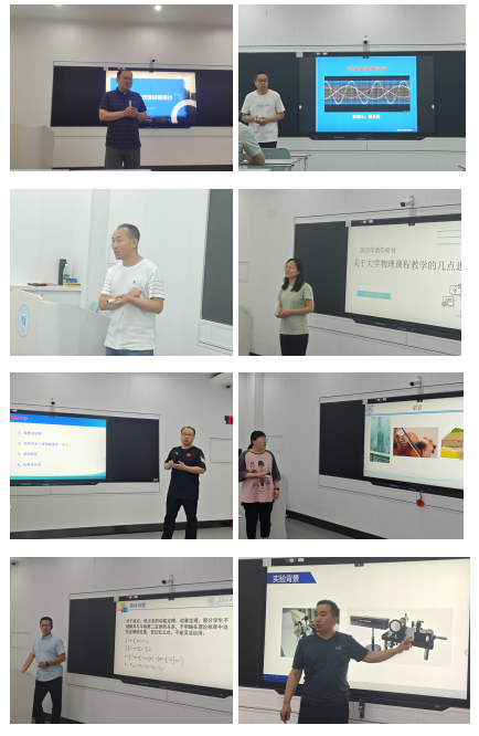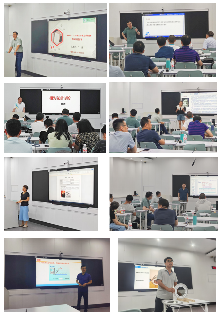 研讨中16位老师以实际授课内容,通过完整的一节课,或某个关键知识点为案例,从教学设计的巧妙构思、教学方式方法的创新运用,课堂讲解展示到课堂管理的有效策略等多维度展开分享;探讨了 “翻转式大班教学 + AI 赋能” 的融合路径,提出利用智能技术破解大班管理难题;解析针对不同层次学生的差异化教学策略;理论与实践的联动教学思路;教学设计中展现科学原理与价值引领的结合;另外,相对论、高斯定理、机械波等经典物理知识点的教学方法优化,以及自然坐标系、波函数等抽象概念的教学设计也在研讨中被深入探讨,现场形成多轮思维碰撞。