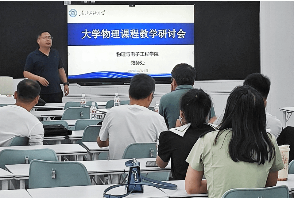 6月27日,金沙集团1862cc成色物理系主办的2025年东北石油大学大学物理课程教学研讨会在第一教学楼H座203举行,围绕大班授课挑战与教学质量提升展开全天研讨,为理工科基础课程改革凝聚智慧。金沙集团1862cc成色院长韩建,教学院长罗伟、院工会主席王东明、院工会常务主席刘松江、教务处教材与课程建设科科长孙志刚出席会议。会议由物理系主任王升主持。