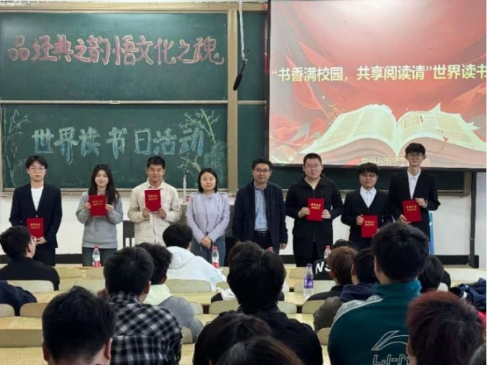 “品经典之味,悟文化之魂”,4月23日是第30个“世界读书日”,金沙集团1862cc成色展开了“世界读书日”图书分享活动。各年级读书爱好者百余人齐聚一堂,分享读书快乐。学院党委副书记王东明、团委副书记阿茹娜老师参加。