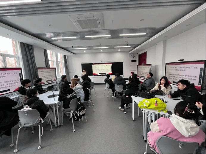 为平稳推进2022级高质量升学就业,鼓励学生锚定人生未来航向,22级辅导员庄翔博、阿茹娜组织各班班长、支书等学生骨干召开座谈交流会,座谈聚焦“保研、考研、考公、就业”四大板块,通过政策解读、数据分析等形式,系统构建学生升学就业认知体系。同时,进行防电信诈骗教育、心理健康教育等,提高学生的安全意识。