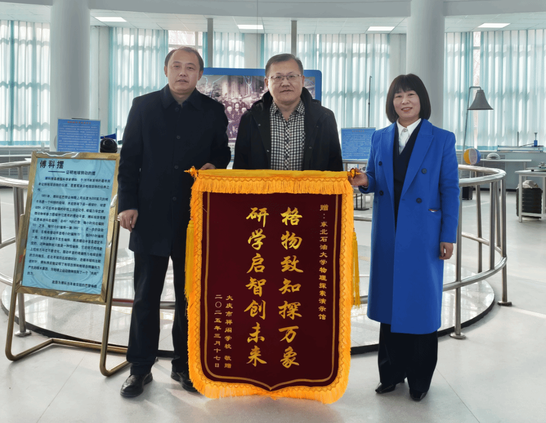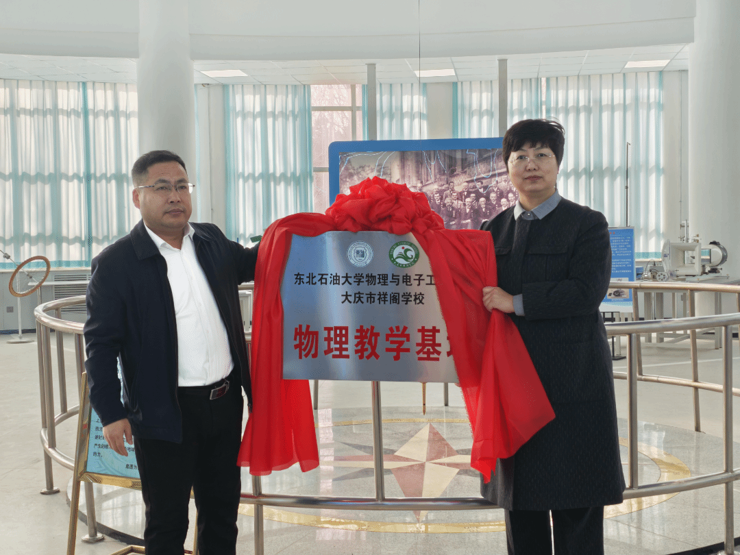 在揭牌仪式上,金沙集团1862cc成色院长韩建介绍了学院的办学历史和特色。他表示:“建立‘物理科普研学基地’是深化高校与中学合作的重要举措。通过共享优质的教学和科研资源,我们将为中学生提供丰富的科学教育平台,激发他们对物理的兴趣,培养创新思维。”大庆市祥阁学校校长任岩表示:“物理科普研学基地的建立,为我校学生提供了一处探寻科学奥秘的殿堂。借助东北石油大学的优秀资源,我们将进一步推进素质教育,深化课程改革,激发学生探索物理的热情,为培养新时代的创新人才奠定坚实基础。”