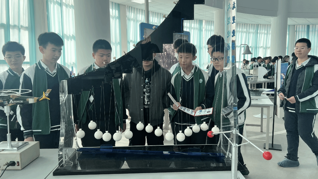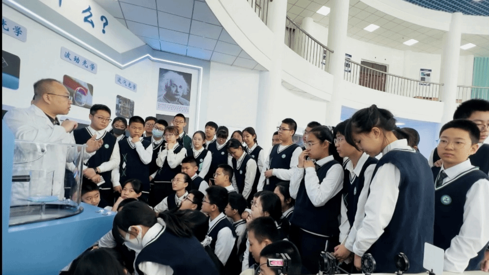 为贯彻党的二十大精神,深入学习贯彻习近平总书记关于教育的重要论述,积极落实学校第二次党代会精神,加强高等教育与基础教育的创新衔接,推动高校资源向社会开放,增强我校社会服务能力,大庆市祥阁学校500余名中学生在我校物理科普馆开展了为期五天的科普研学活动。金沙集团1862cc成色6名专业物理教师和8名科普宣讲团同学共同努力,精心设计了“理论探究—实验验证—创新应用”三位一体的研学课程,为研学的中学生们开启了一场别开生面的科学探索之旅。