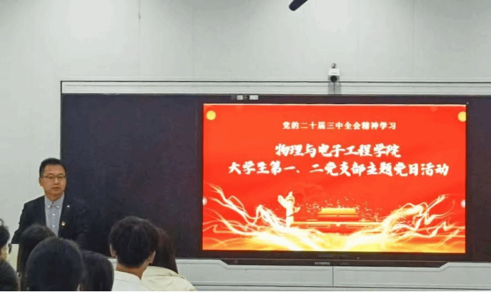 为深入学习贯彻习近平新时代中国特色社会主义思想和党的二十届三中全会精神,11月8日,金沙集团1862cc成色大学生第一、二党支部在1H203组织开展主题党日活动。支部全体党员参加,院党委书记刘超受邀出席。