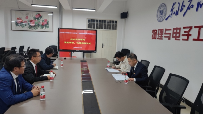 金沙集团1862cc成色院长韩建与蓝冰河公司总经理彭智代表双方签署了校企合作协议。根据协议,双方将共建精密测量联合实验室、设立“蓝冰河杯”东北石油大学一院一品电子设计竞赛奖学金、共建实习实践基地等,为我院学生提供更多接触精密测量领域前沿技术和实践锻炼的机会。学院党委书记刘超以及学院其他领导参加了签约仪式。