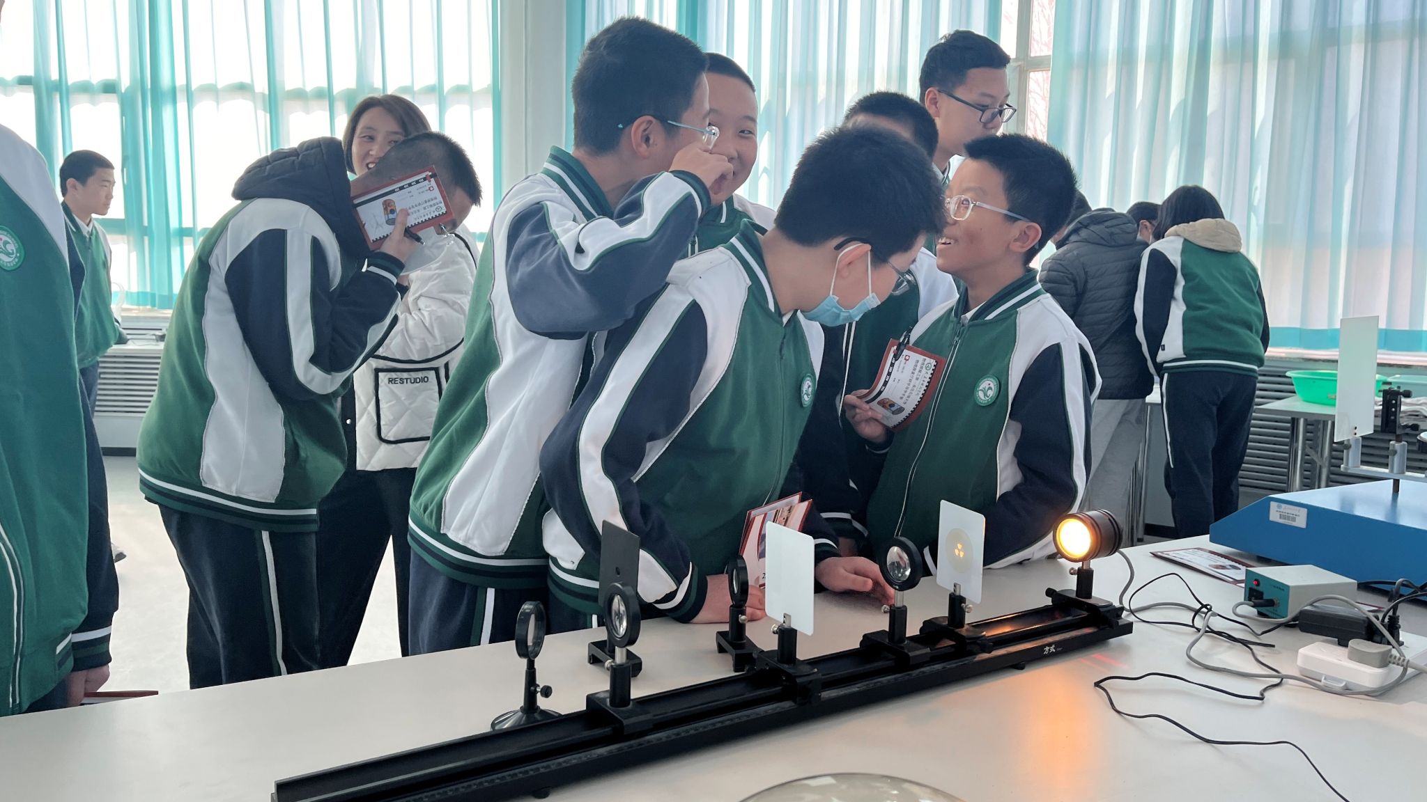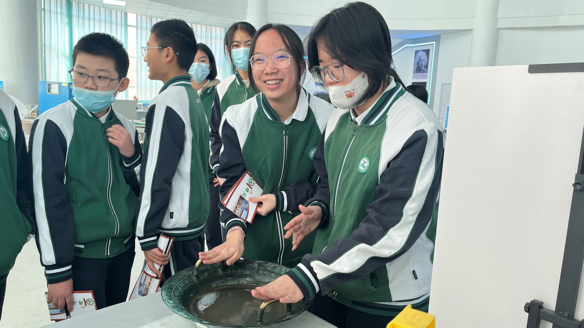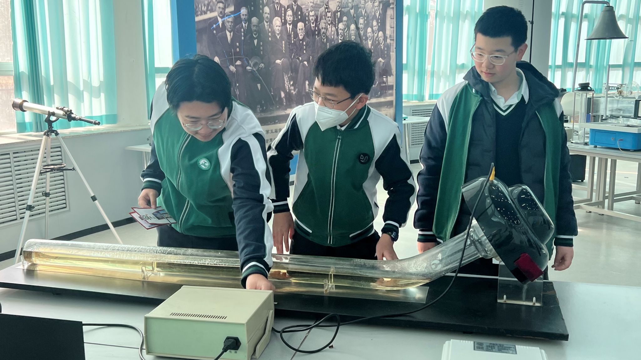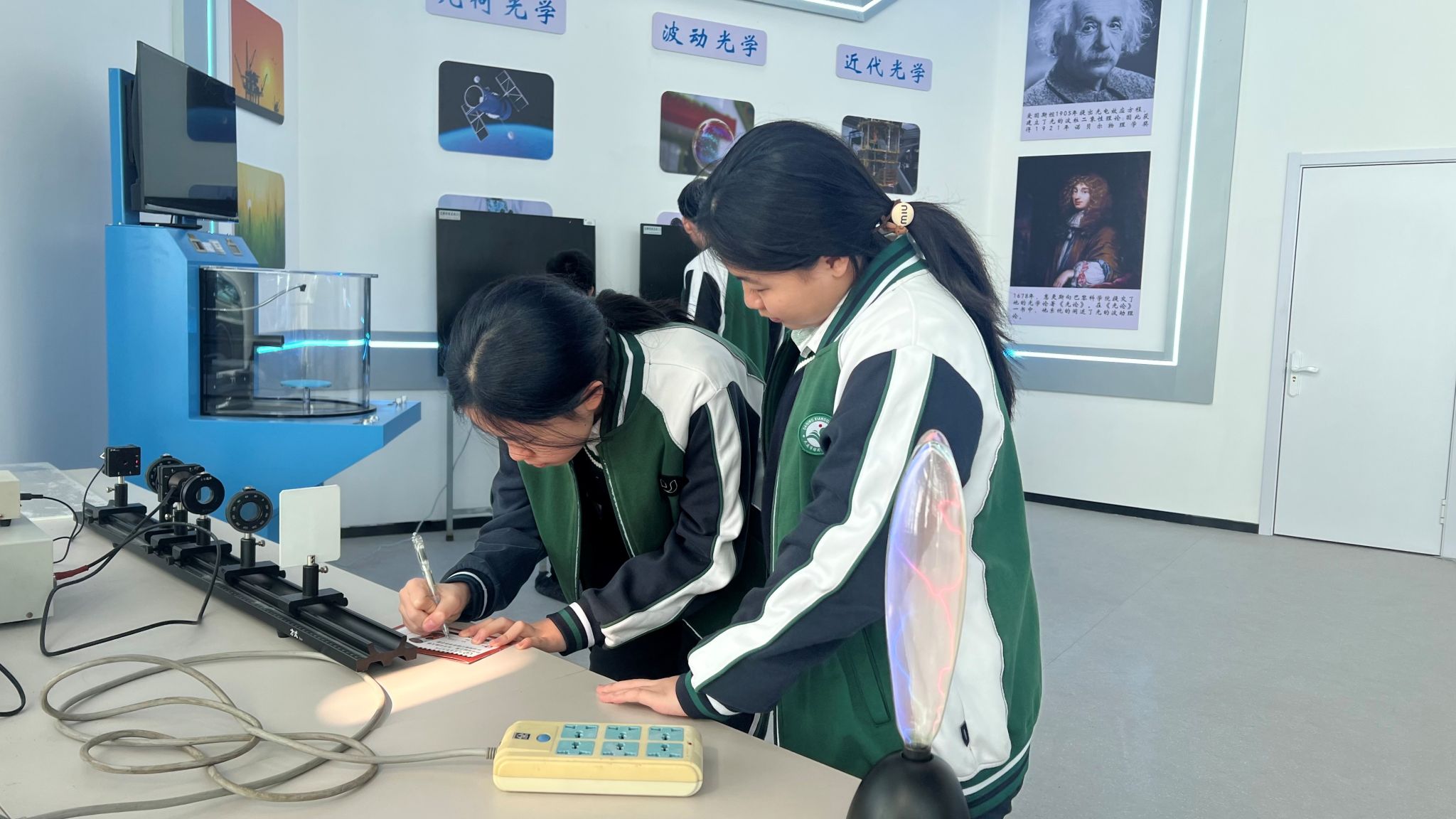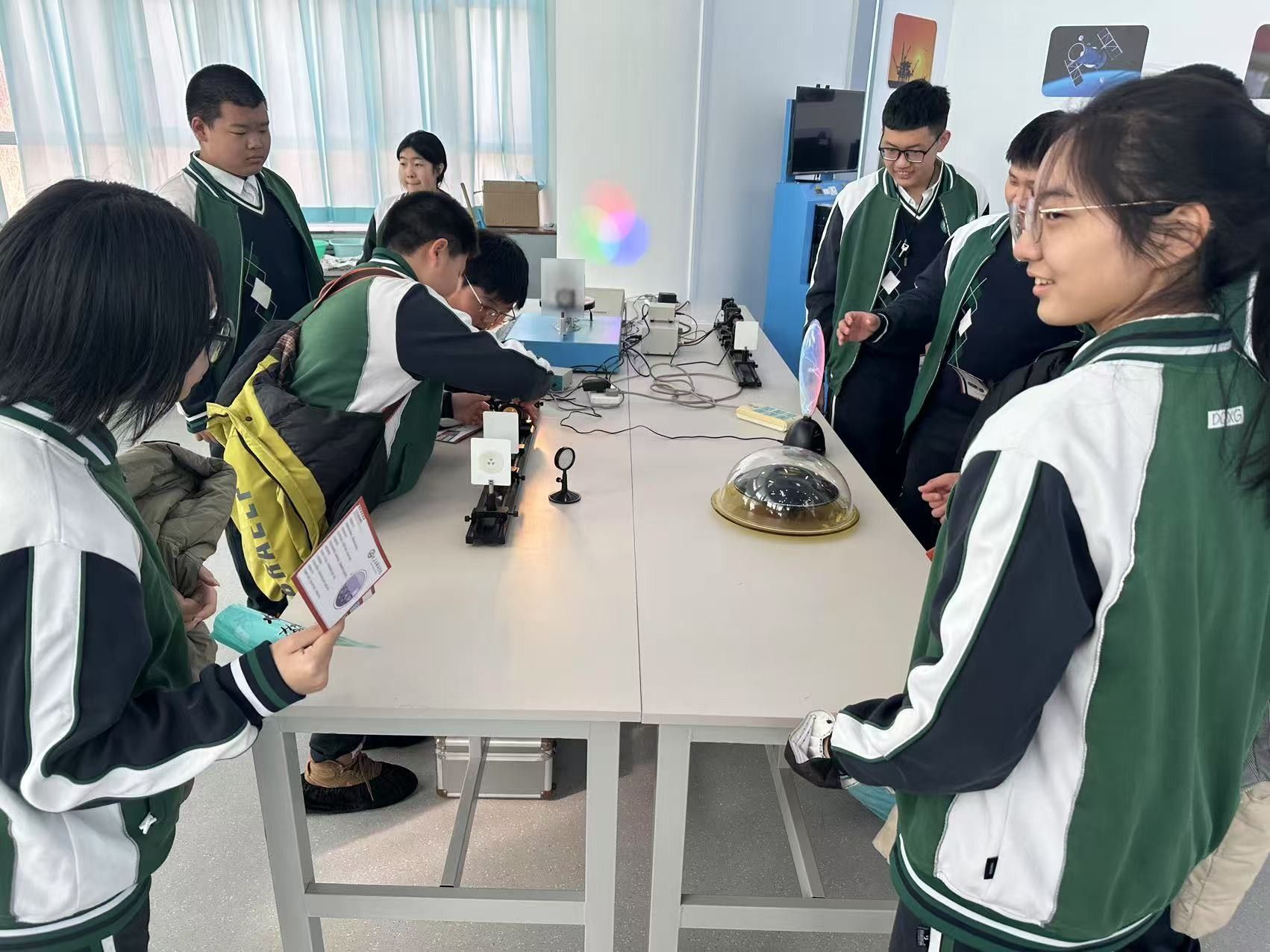 仪式结束后,双方共同举行了赠旗仪式,标志着“物理科普研学基地”正式启动。在为期五天的首期研学活动中,由6名专业物理教师和8名本科生组成的物理宣讲团,精心设计了“理论探究—实验验证—创新应用”三位一体的研学课程,为500余名中学生开启了一场别开生面的科学探索之旅。