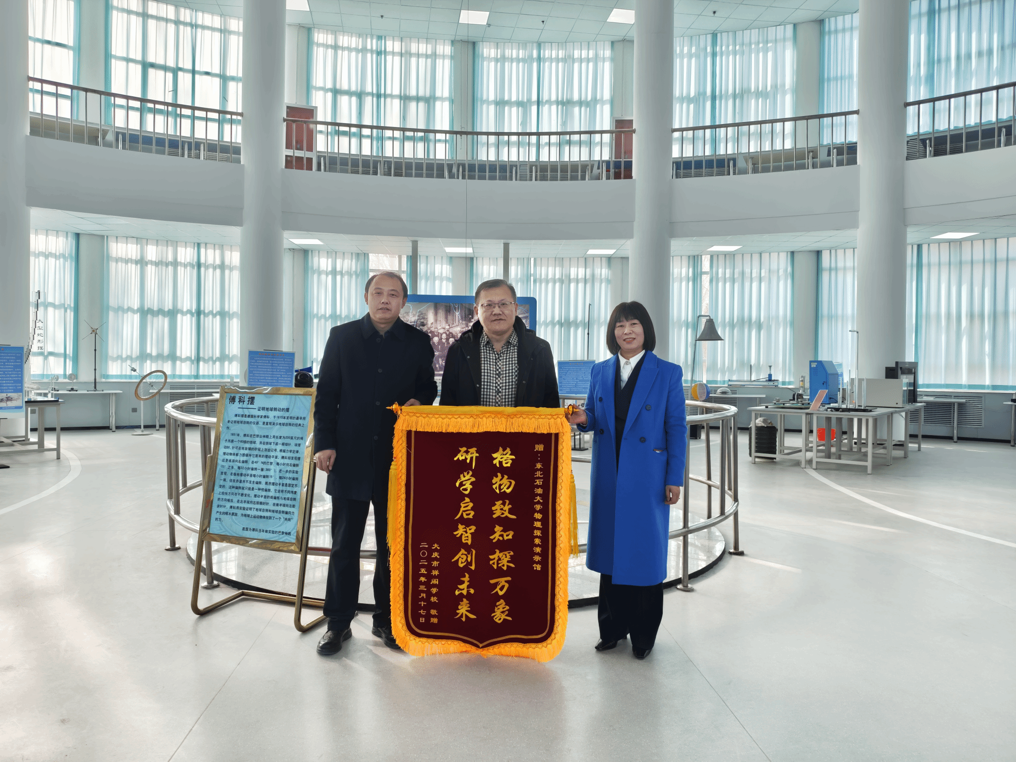 为贯彻党的二十大精神,深入学习习近平总书记关于教育的重要论述,进一步加强高等教育与基础教育的创新衔接,推动高校资源向社会开放,增强我校社会服务能力,金沙集团1862cc成色与大庆市祥阁学校“物理科普研学基地”于3月17日在物理探索演示馆正式揭牌。金沙集团1862cc成色院长韩建、大庆市祥阁学校校长任岩,以及双方教师代表出席了揭牌仪式。