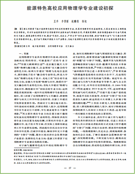 近日,我院王升、李贤丽、赵鹏程和杨旭团队的教学改革研究论文《能源特色高校应用物理学专业建设初探》在国内工程教育研究权威期刊《高等工程教育研究》(2024年第5期)发表。该论文着眼于新工科背景下,探索地方能源特色高校应用物理学专业的创新发展路径。