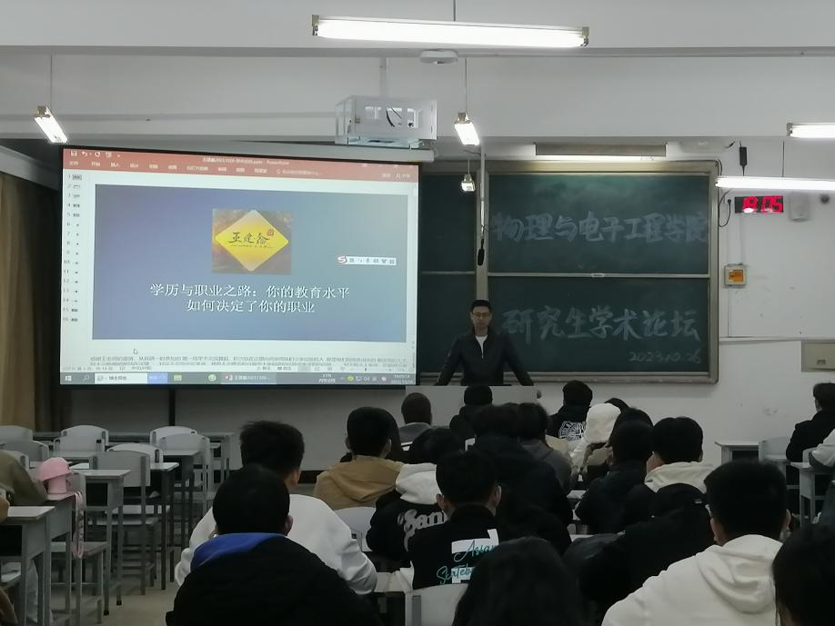 为配合学院学风建设系列活动,解答研究生对学习和择业上的疑惑,营造良好的学术氛围,金沙集团1862cc成色于10月26日18:00在1F-216举办研究生第二十六期学术论坛,2022级博士研究生王建鑫受邀进行分享,我院辅导员张雪莹以及2023级全体研究生参加本次论坛。