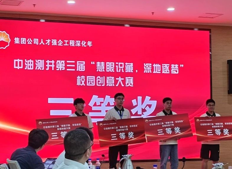 为提高能源人才的创新能力和锻造能源强国的一流人才方阵,7月7日至8日,由中国石油集团测井有限公司举办的“慧眼识藏,深地逐梦——第三届校园创意大赛”决赛在西安成功举办,该竞赛由测井公司依据生产实际进行命题,涵盖电路设计题目三道;软件设计题目三道;地质评价题目三道。我院23级仪器仪表工程研究生夏生超、陈祎璠与仪器科学与技术研究生叶林、周思璐组成的代表队经初赛,复赛选拔后冲入全国总决赛。出于对大数据分析与地质数据研究的兴趣,该团队选择了波形数据去噪的题目,参赛作品有效实现了三种不同的去噪技术,其中涉及大量图像处理与机器学习的知识。团队从5月开始准备,期间反复修改完善程序。在完成赛题本身的要求外,团队指导教师韩建老师和曹志民老师建议在赛题要求的基础上进行拟合完整波形的拓展,对赛题进行更深入的挖掘和展望。最终,团队喜获全国三等奖的优异成绩。