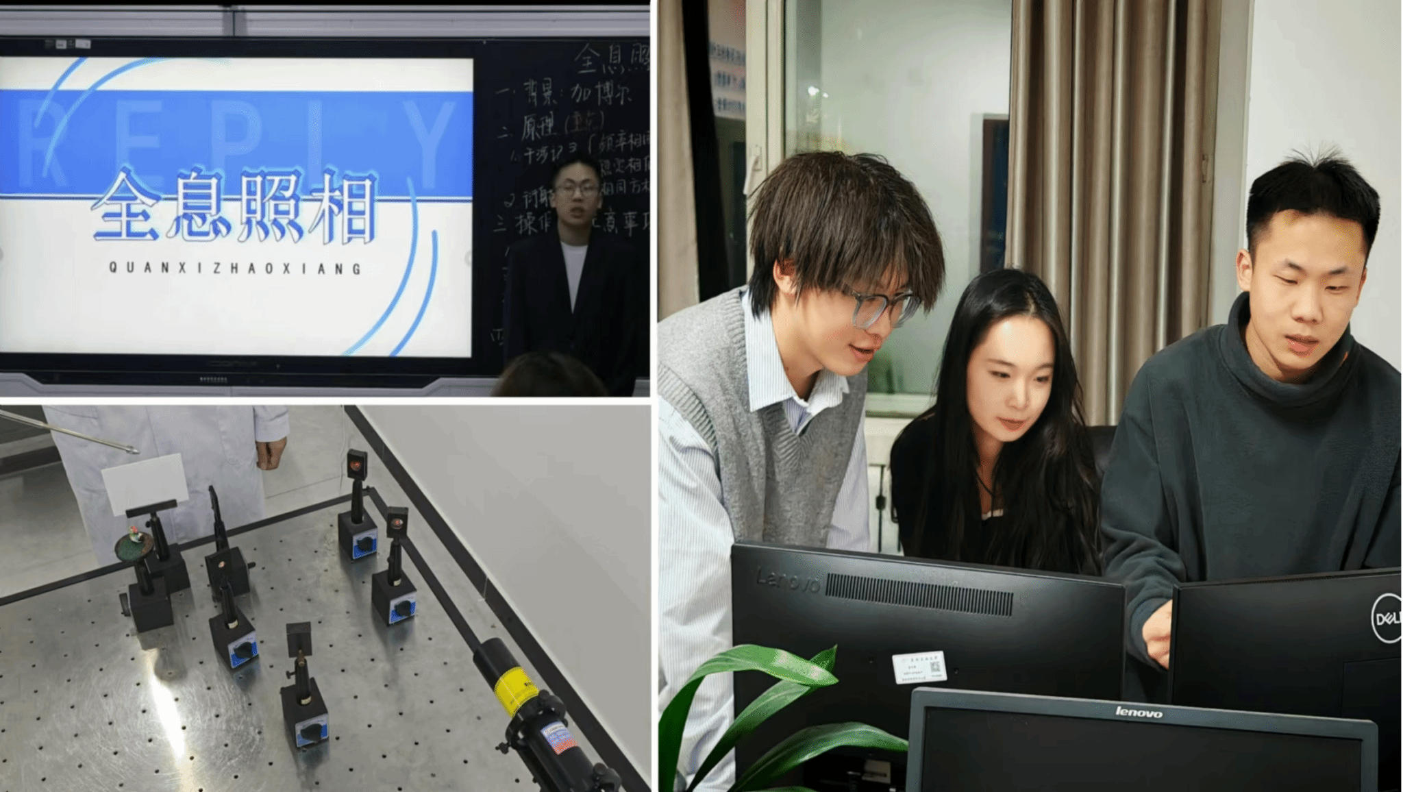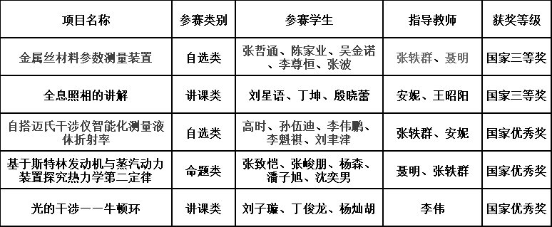自选组赛道,电子22-2班张哲通同学带领团队,在张轶群、聂明老师指导下,凭借“金属丝材料参数测量装置”斩获国家三等奖;讲课组赛道,资勘22-3班刘星语同学率队,在安妮、王昭阳老师指导下,以“全息照相的讲解”荣获国家三等奖。