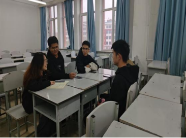 学妹小媛(紧张地整理笔记本):“学长们好!首先恭喜你们都考上了心仪的学校,能不能说说当初是怎么决定要一起考研的呀?”