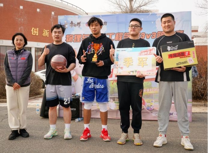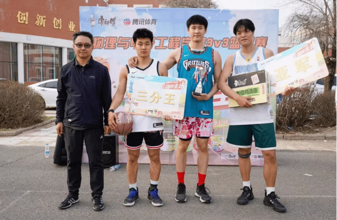 为了丰富校园文化生活,为学校阳光体育文化节预热,鼓励同学们“放下手机,走出寝室,运动起来”~金沙集团1862cc成色举办了3v3篮球邀请赛,全校共有40支球队参加比赛。体育部贾智丰主任、时光副主任和院党委副书记王东明参加本次活动并为决赛前三名队伍颁奖。