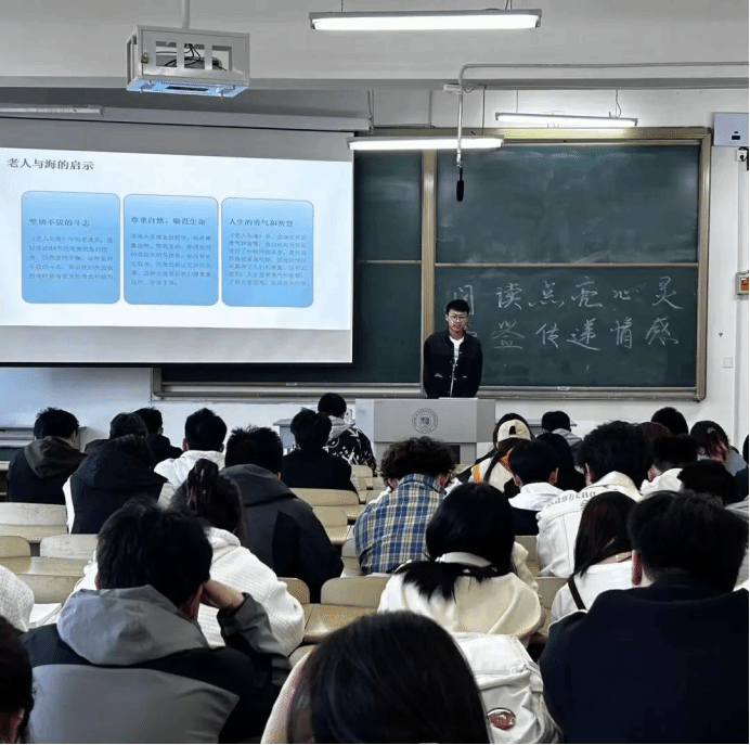 活动的序曲,是书籍的交响乐。杨怡乐同学以其独特的视角,引领我们走进了《三国演义》的壮阔世界,带我们见证了英雄的崛起与陨落,感受到了智谋与胆识的较量;邢凤博同学讲述了《老人与海》中那位坚韧不拔的老者与海洋的搏斗。这个故事,如同一片浩渺的大海,波涛汹涌,却也充满了无尽的勇气与希望;李蔷同学通过《苏东坡传》让我们深入了解到苏轼这位伟大的文学家、书法家和画家的传奇一生。我们仿佛穿越时空,与苏轼一同领略了大江东去的壮阔,一同感受了庐山烟雨的空灵。在这场活动中,我院学生不仅领略了书籍的魅力,更感受到了文字的力量,它们如同一束束光芒,照亮了我们前行的道路,点亮了我们内心的灯塔。
