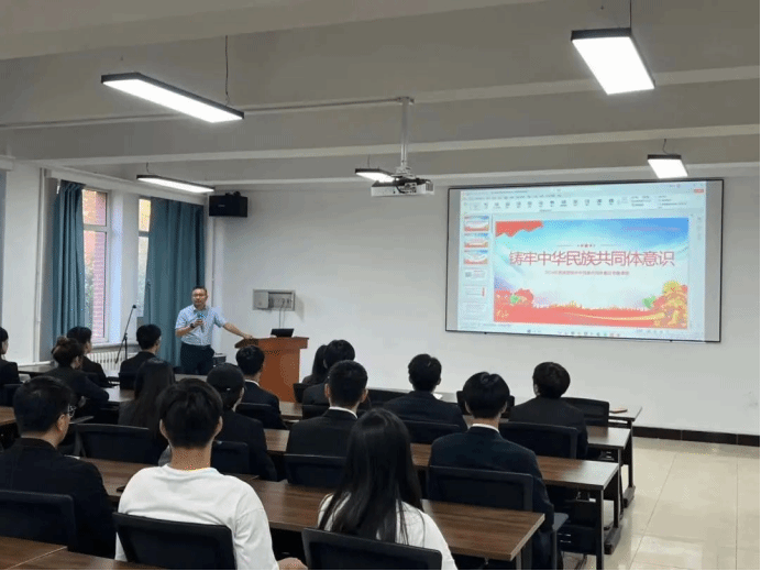 王东明为师生党员、团员开展以《铸牢中华民族共同体意识》为主题的党课。党课上,他从历史的角度讲授了铸牢中华民族共同体意识的由来、意义以及如何铸牢中华民族共同体意识。他指出,作为新时代的大学生,不仅需要扎实的专业知识,更要敢于作为,勇于担责,争做维护民族团结进步的表率,为铸牢中华民族共同体贡献青春力量。