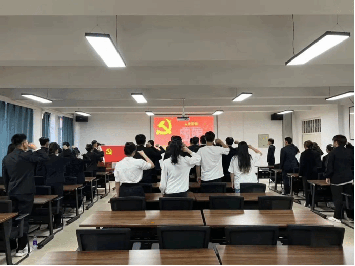 “我志愿加入中国共产党……随时准备为党和人民牺牲一切,永不叛党。”全体成员面向鲜红的党旗宣誓,许下对党忠诚的庄严承诺,进一步坚定了听党话、跟党走的决心意志。
