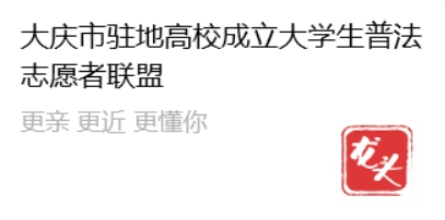 此次大庆市大学生普法志愿者联盟成立大会等活动引发各级媒体积极关注,黑龙江日报,法治日报和新华网等媒体给予肯定评价。
