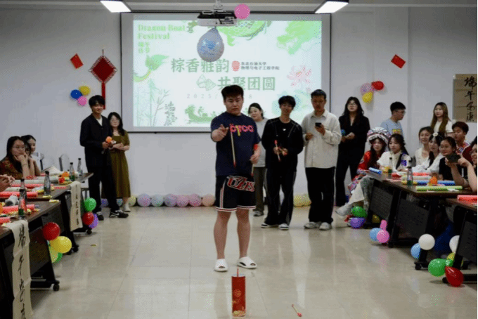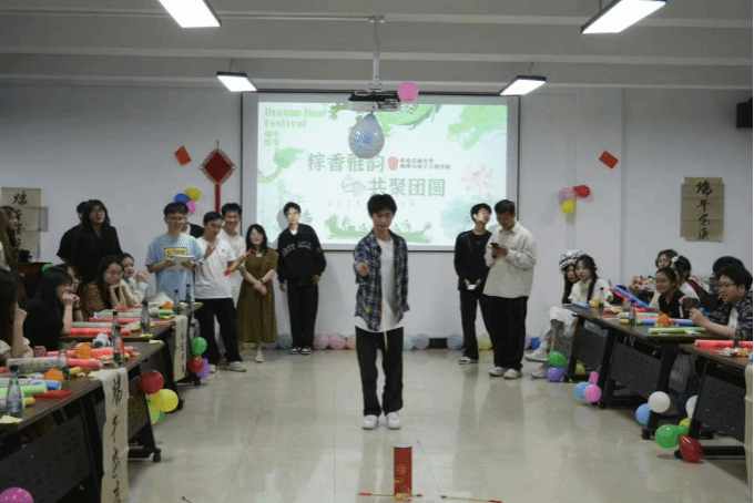 刘超书记向大家致以节日的问候,他强调学院致力于构建温暖和谐的多民族大家庭,各族学生学业互助、文化互鉴的实践生动诠释了“各民族像石榴籽一样紧紧抱在一起”的深刻内涵,他希望在端午节活动中大家深刻体会中华传统文化魅力,来自祖国不同地区的各民族同学们要增进交流,共同铸牢中华民族共同体意识;要将团结互助融入日常行动,凝聚团结奋进的力量。