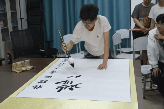 张晓同学以歌曲《簇拥烈日的花》唱响昂扬精神,张涌奇同学挥毫展现中华书法魅力;唐子西、王酉祥深情朗诵《端午咏屈原》致敬先贤。高潮部分,全体师生同声高歌《我爱你中国》,用最真挚的情感和嘹亮的歌声,唱响了血脉相连的深情与对祖国的共同热爱,将全场团结奋进的气氛推向顶点。