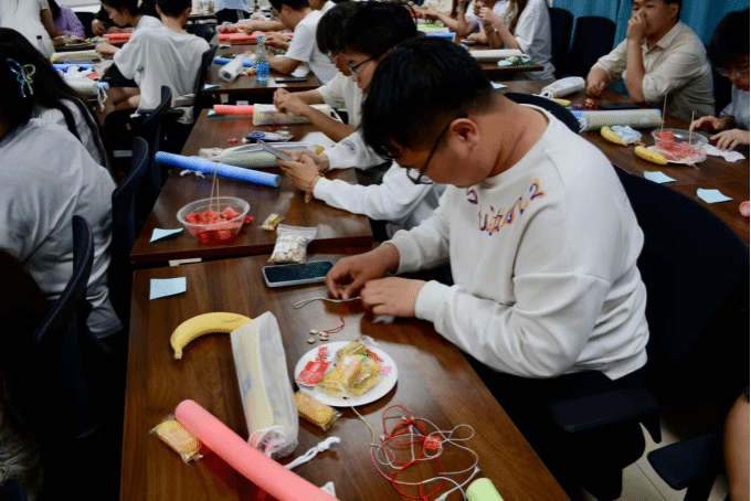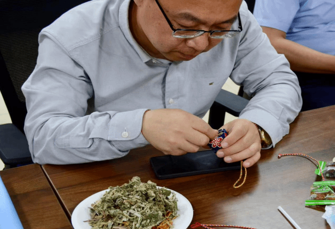 全体师生动手制作香囊与五彩绳,一针一线寄托安康祈愿,五彩丝缕编织吉祥寓意,在工作人员指导和同学互助下,大家亲手完成的端午礼物,承载传统祝福,传递温情暖意。