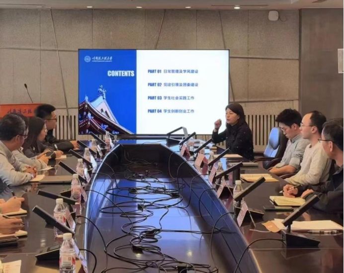 在东北林业大学理学院,院党委书记李玉荣对兄弟院校来访表示欢迎,并对深化交流合作提出愿景。院党委副书记李鹏和各位辅导员老师就林大理学院以生态文明为底色、以基础学科人才培养为目标的学生工作大背景以及志愿服务育人、精准资助育人、数理文化育人、学风引领育人等特色做法和经验成果进行了工作介绍。